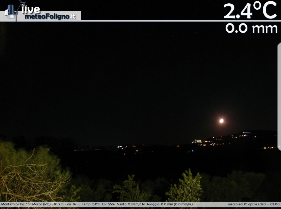 Per tutto la notte ha tirato vento (come è ovvio che sia visto che siamo all'apice dell'irruzione fredda e la mia zona ne risente molto in termini di vento) e la temperatura ha avuto continui sali-scendi (all'1:14 erano già -1,1°c) senza calare come avrebbe potuto.