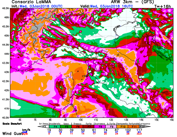 Oggi pomeriggio si avrà una breve ma intensa burrasca di curèna (garbino) con venti che sui rilievi supereranno tranquillamente i 100 km/h e nelle pianure pedecollinari (quindi a sud della Via Emilia) supereranno i 60 km/h con locali picchi possibili sino ad 80 km/h.