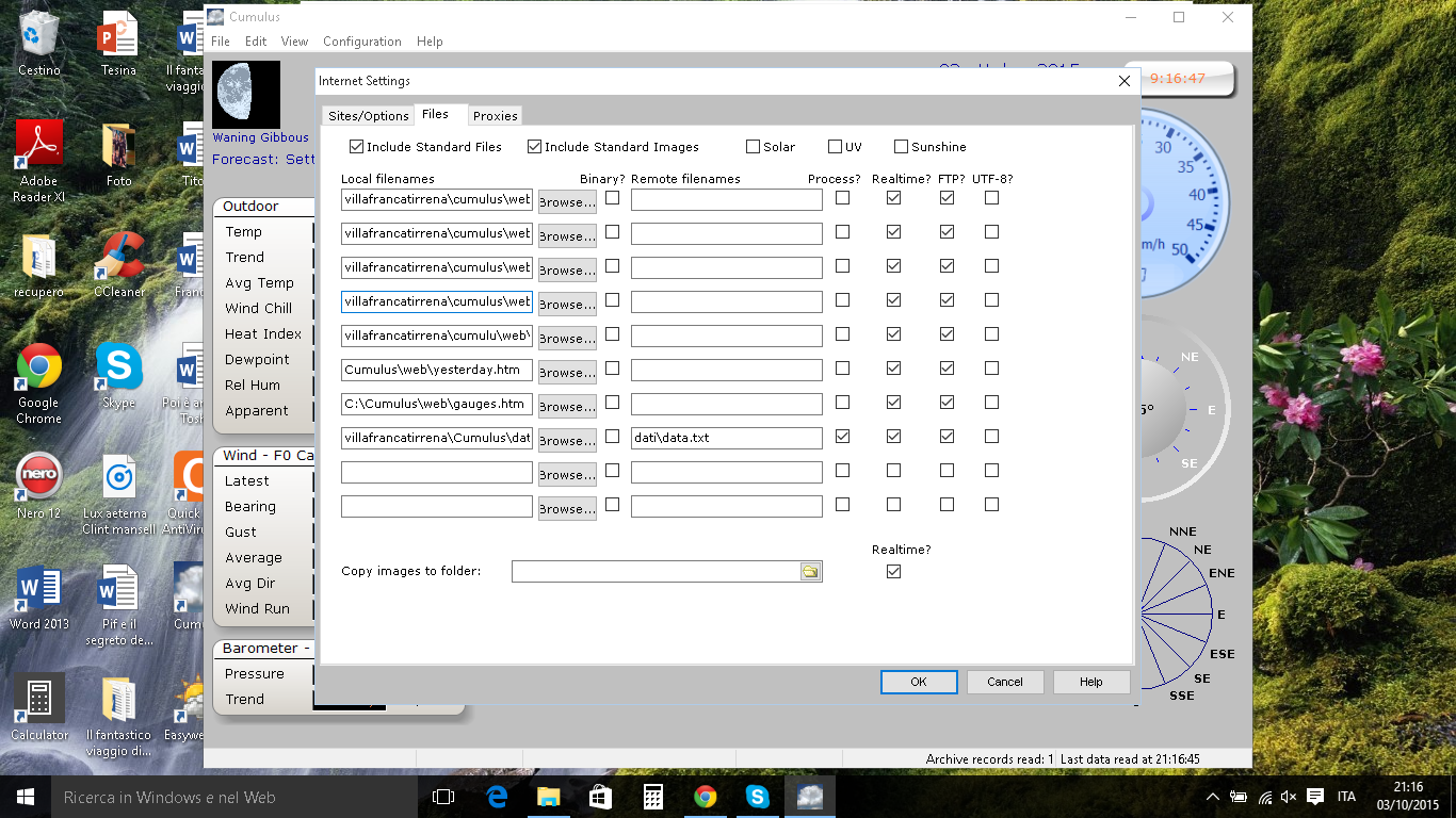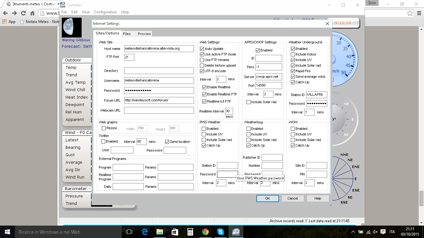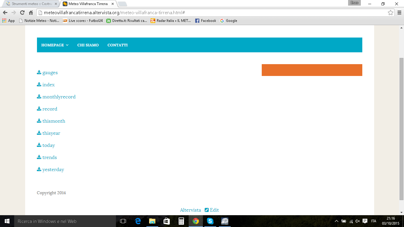 Cia a tutti, ho costruito lo schermo solare per la mia pce e sta già svolgendo il suo lavoro. Prima di inviare il modulo di richiesta per la messa online su lineameteo, mi manca un ultimo passaggio: il sito web. L' ho creato tramite altervista, ho inviato i dati tramite cumulus correttamente, ma non compare niente nella pagina che resta bianca, come se fosse vuota. Spero che qualcuno possa aiutarmi, visto che sono vicino alla meta. Grazie in anticipo.