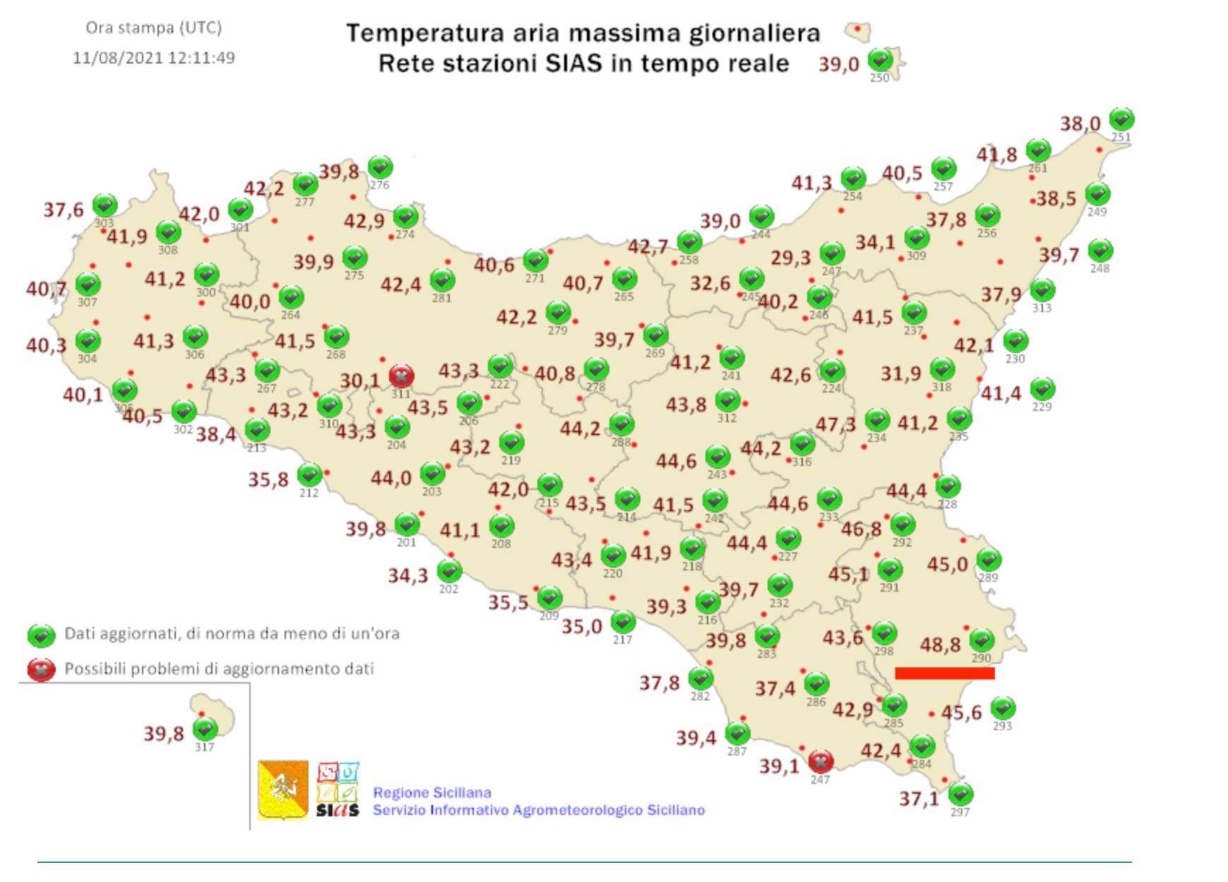 Abbiamo forse un nuovo record di caldo europeo vicino Siracusa. 48,8 gradi.