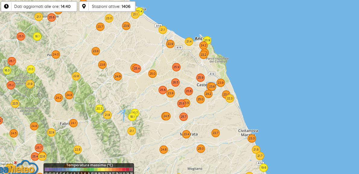 +24.8° massima in corso, con umidità al