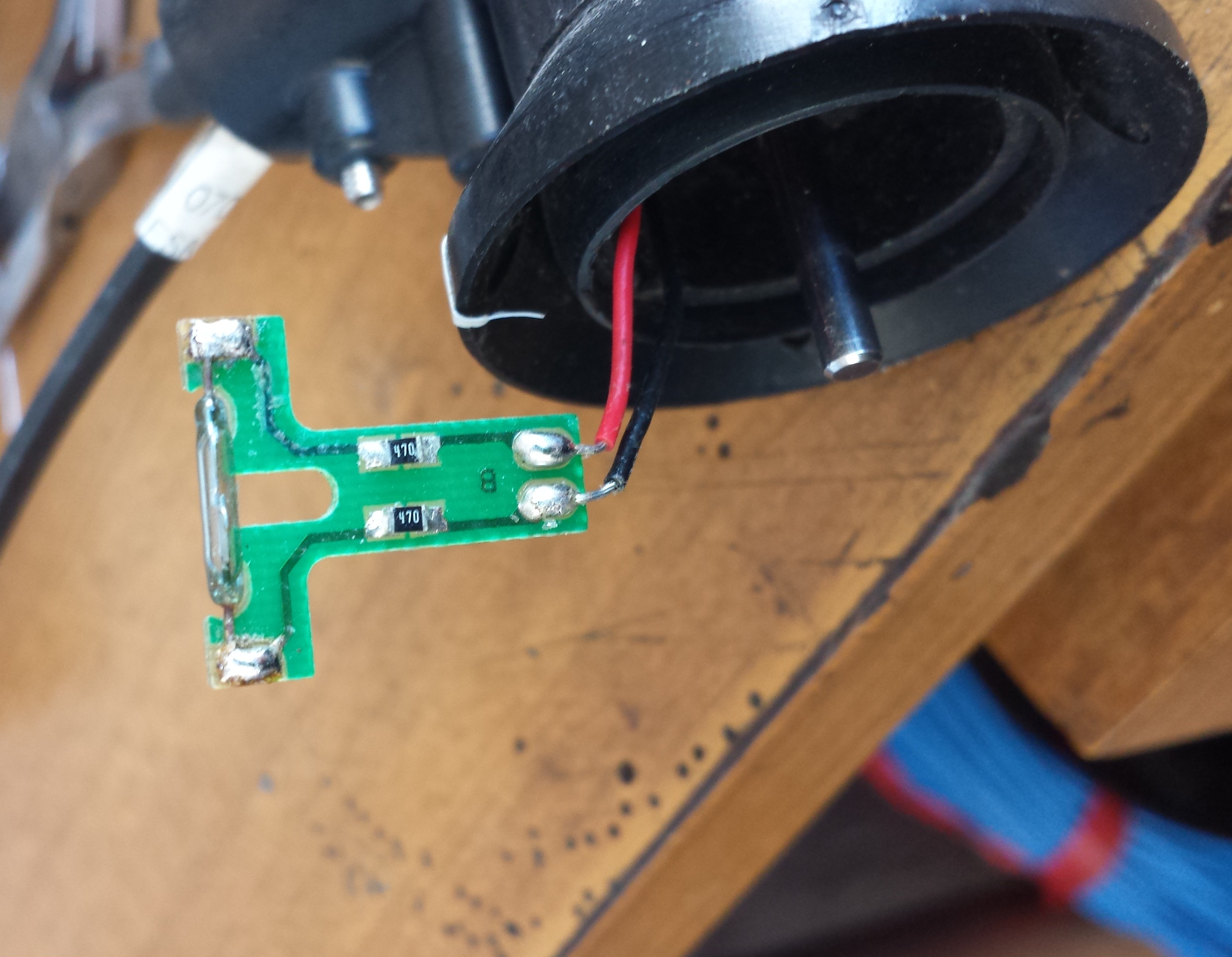 Trattasi del modello 6410 di vecchia fattura, dove il sensore di giri è realizzato con un reed relè attivato da un magnetino calettato sull'asse delle coppette. Ad ogni rotazione corrisponde un impulso in chiusura. Il pezzo si smonta con buona facilità, ovviamente avendo pratica di micromeccanismi... In questo caso il guasto è determinato dal reed relè che è divenuto insensibile al campo magnetico, probabilmente per fine vita meccanico. I due contatti metallici si trovano entro una ampollina di vetro lunga 1cm ove è fatto il vuoto. Quando l'ampollina si trova immersa in un campo magnetico i due contatti si attraggono chiudendo il circuito, per poi riaprirsi in assenza di campo magnetico. Pertanto vi è uno stress meccanico per il movimento di chiusura ed apertura, nonchè stress elettrico, dal momento che sui contatti, in chiusura, deve scorrere una seppur minima corrente. Ovviamente non ho intenzione di mettere un nuovo reed, ma di sostituirlo con un circuito/componente elettronico molto più longevo ed affidabile. Tempo permettendo, quando avrò compiuto l'operazione vi renderò partecipi.