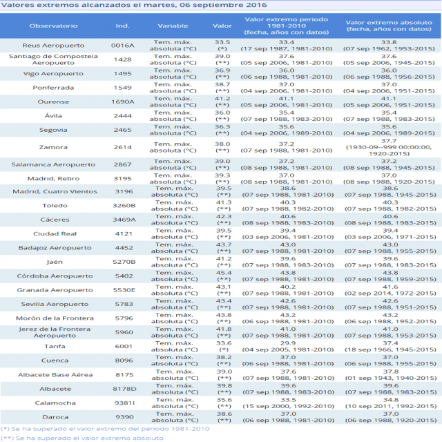 Granada il 6 settembre ha avuto 43,2 gradi di massima, nuovo record mensile e assoluto! Granada sta a quasi 600 metri di quota, valori assolutamente pazzeschi, spiegabili soltanto con il breve tratto di mare che collega la Spagna all'Africa e che ne fa in taluni casi una vera e propria appendice africana.