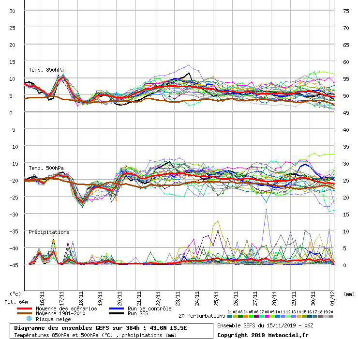 Volendo fare un cenno alle prospettive del medio-lungo termine, si vede un getto sempre quasi meridiano e che sprofonda in modo quasi reiterato a W , ostacolato dal blocco semi-permanente a est nell'Europa balcanica-orientale.. una vera spina sul fianco..