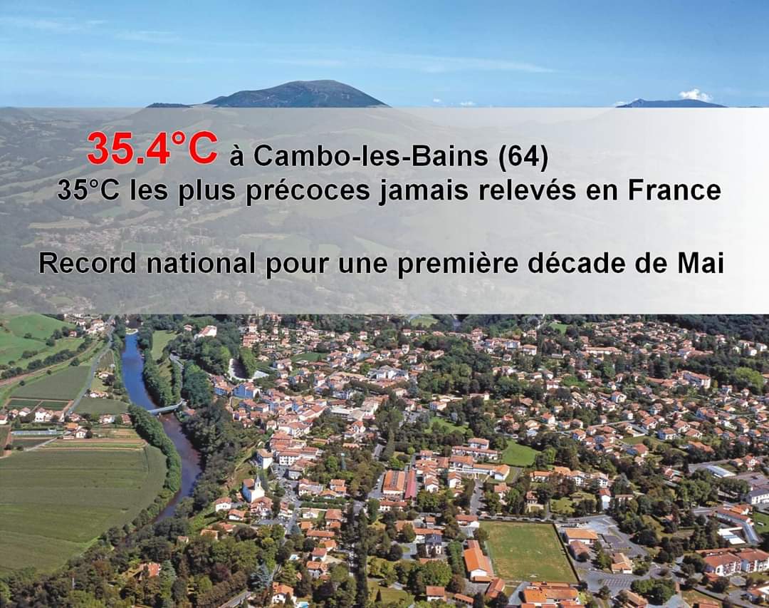 Superati i +35° nella giornata di ieri in una località francese a ridosso dei Pirenei, risulterebbe un record per Maggio mai osservato dall'inizio delle rilevazioni!