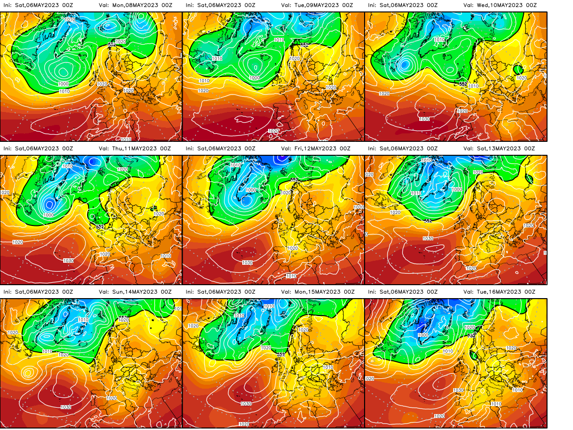 Da lunedì impulsi nord-atlantici a profusione e lacuna barica che persisterà per almeno 5-7 giorni se non di più. Ottimo direi