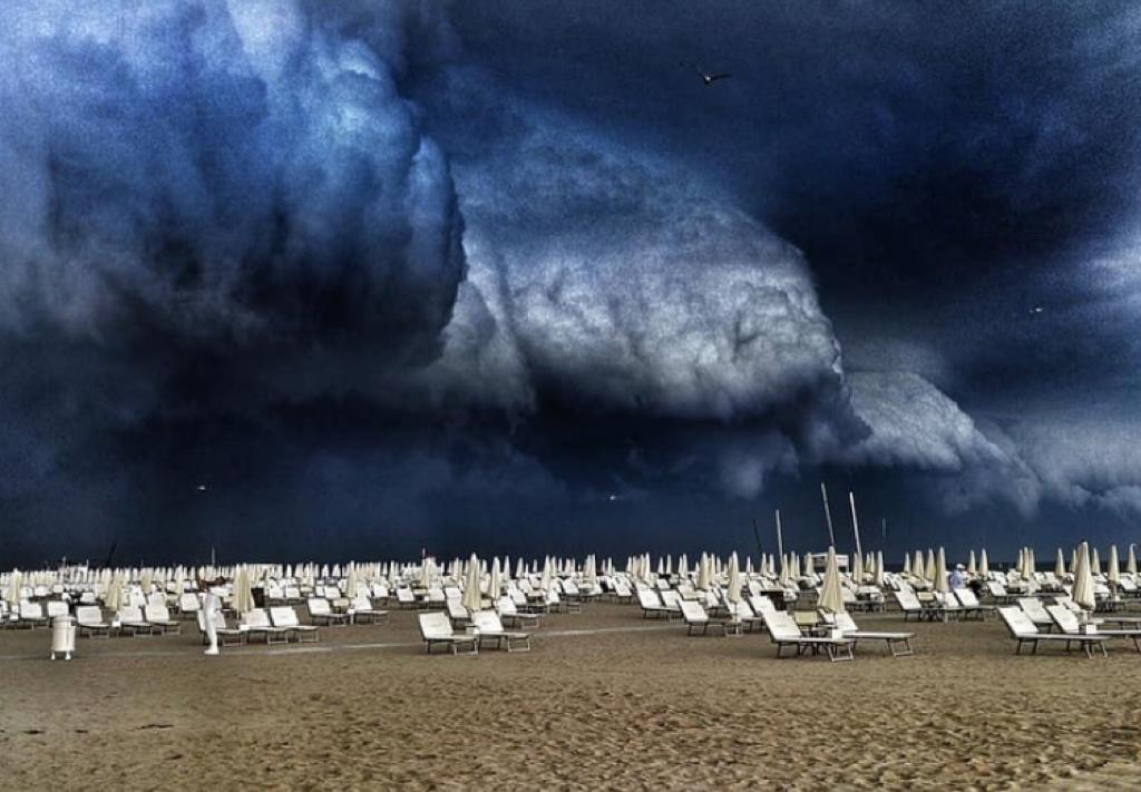 Di seguito l’arrivo della shelf cloud a Rimini, presa da un sito locale