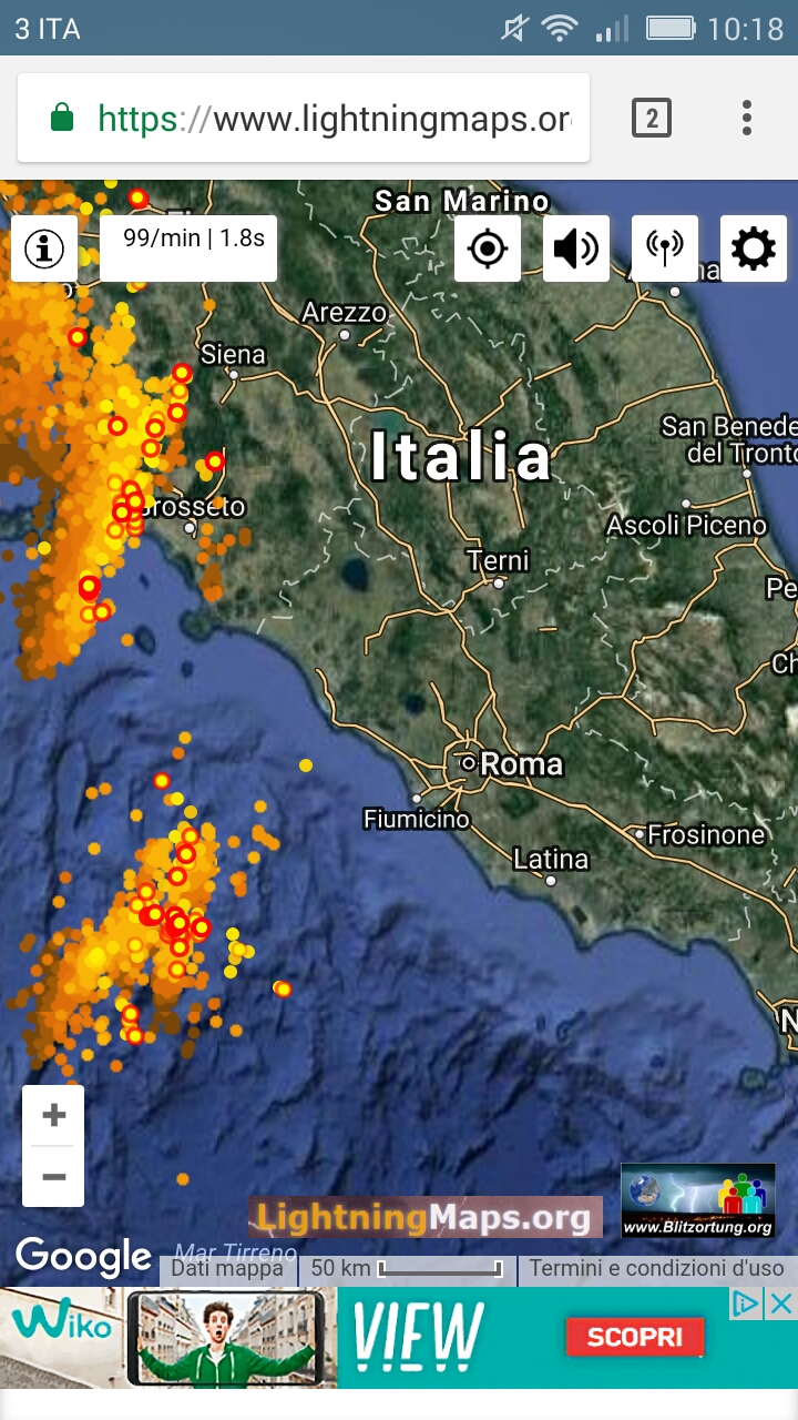 Buongiorno, dalla mappa dei fulmini si nota come il peggioramento sia già sulla Toscana e davanti le coste laziali. A breve credo che gli umbri occidentali/nord occidentali vedano qualcosa.