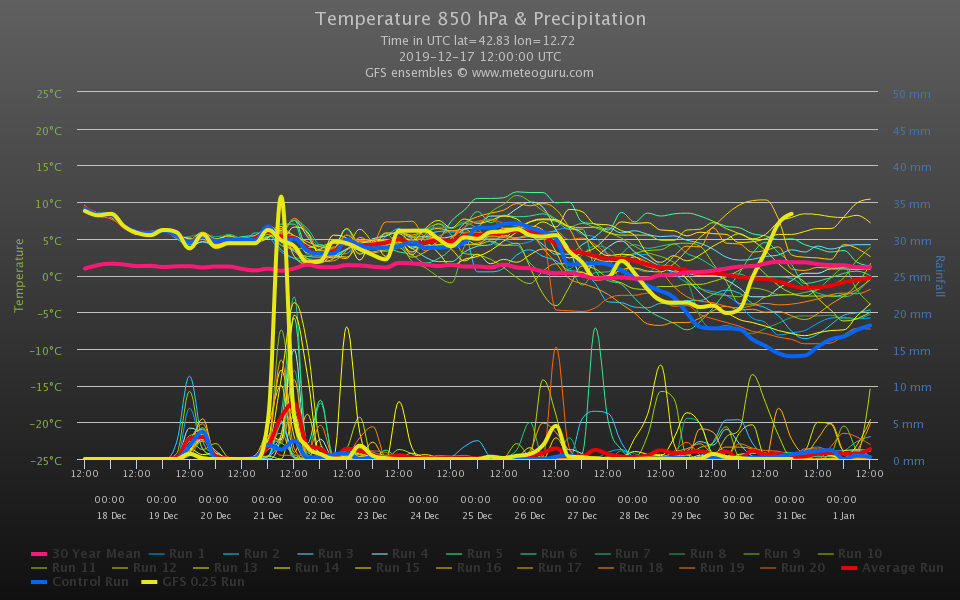 per il periodo Natalizio avvicina una colata gelida all'Italia che non ci interesserà direttamente ma che almeno produrrà interessanti effetti termici: potremo avere promontorio anticiclonico fresco ed una giornata quantomeno con riscaldamenti accesi.