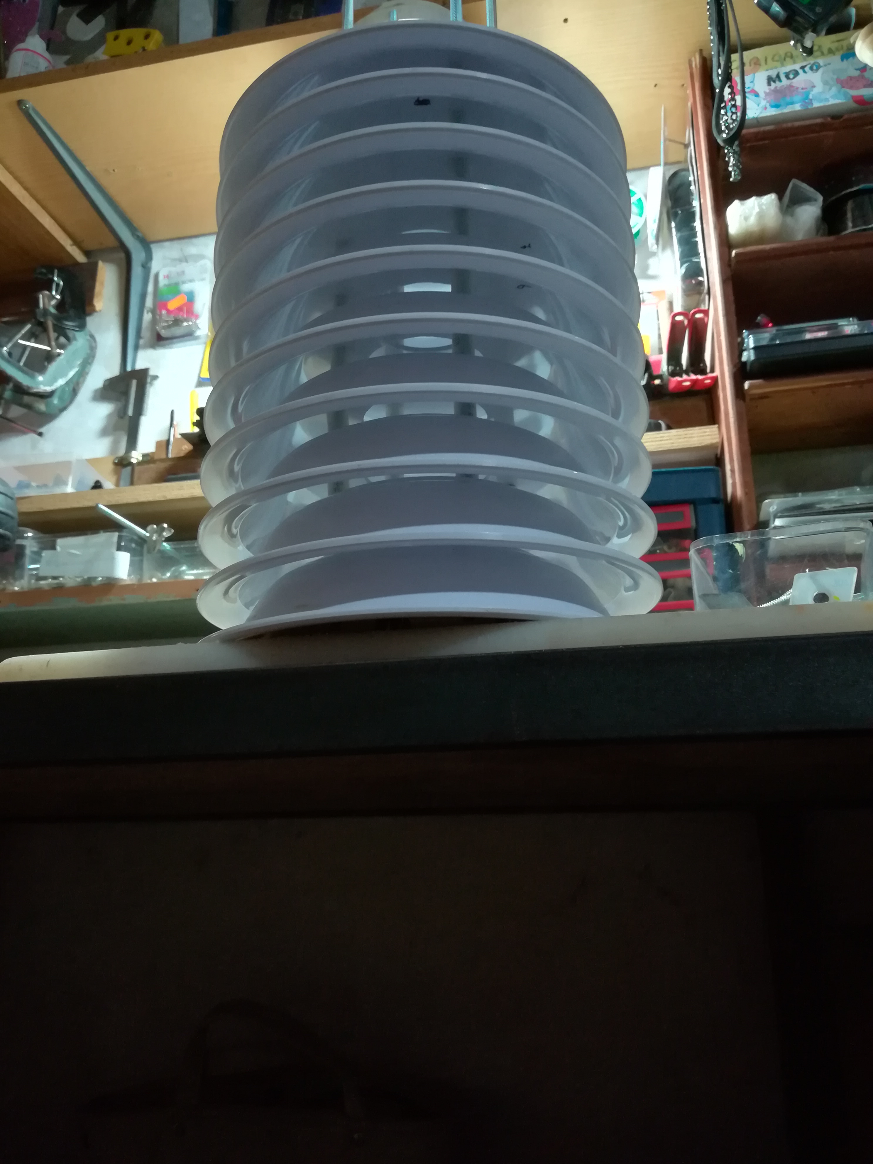 Come hai giustamente scoperto i piatti che ho preso non sono in melamina. Come ho detto ho studiato a fondo sia lo schermo Davis che i vari "cloni" realizzati dagli appassionati. I piatti in melamina, come quelli che usa la Davis, sono il massimo, non c'è dubbio. Non sono partito con questo materiale solo per semplificare la realizzazione (la melamina va forata con attenzione) e per farmi un po' di esperienza, in fondo questo è il primo schermo autocostruito di una lunga serie...