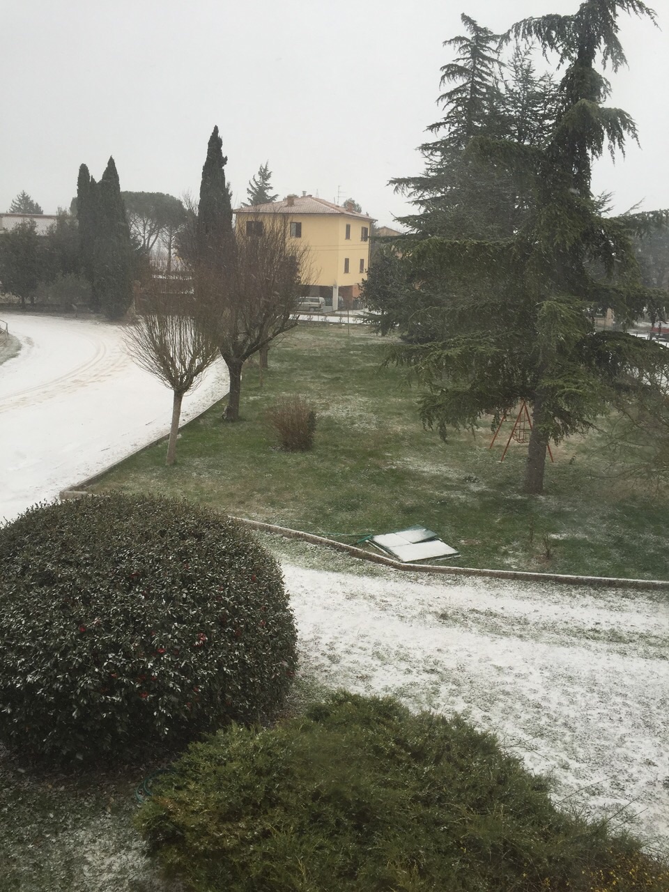 L'accumulo della nevicata è salito a 7 cm (1 cm ieri + 6 cm questa mattina) e, dopo una pausa, adesso è ripreso a nevicare.
