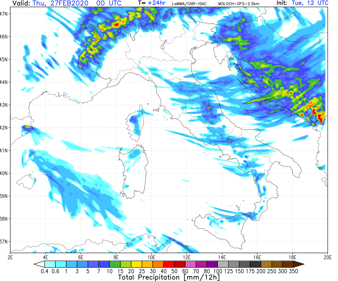 In realtà qualcosa vedono i lamma, il fronte di tipo temporalesco sarà velocissimo, quindi anche le cumulate risulterebbero scarse..