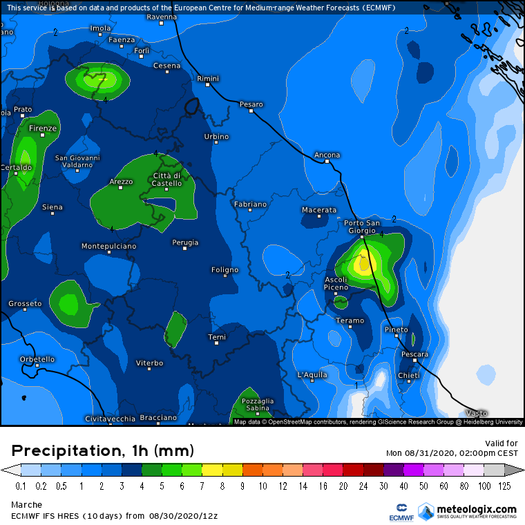 Verso l'alba/prima mattina prime piogge in bassa Umbria, tra deboli e moderate.
