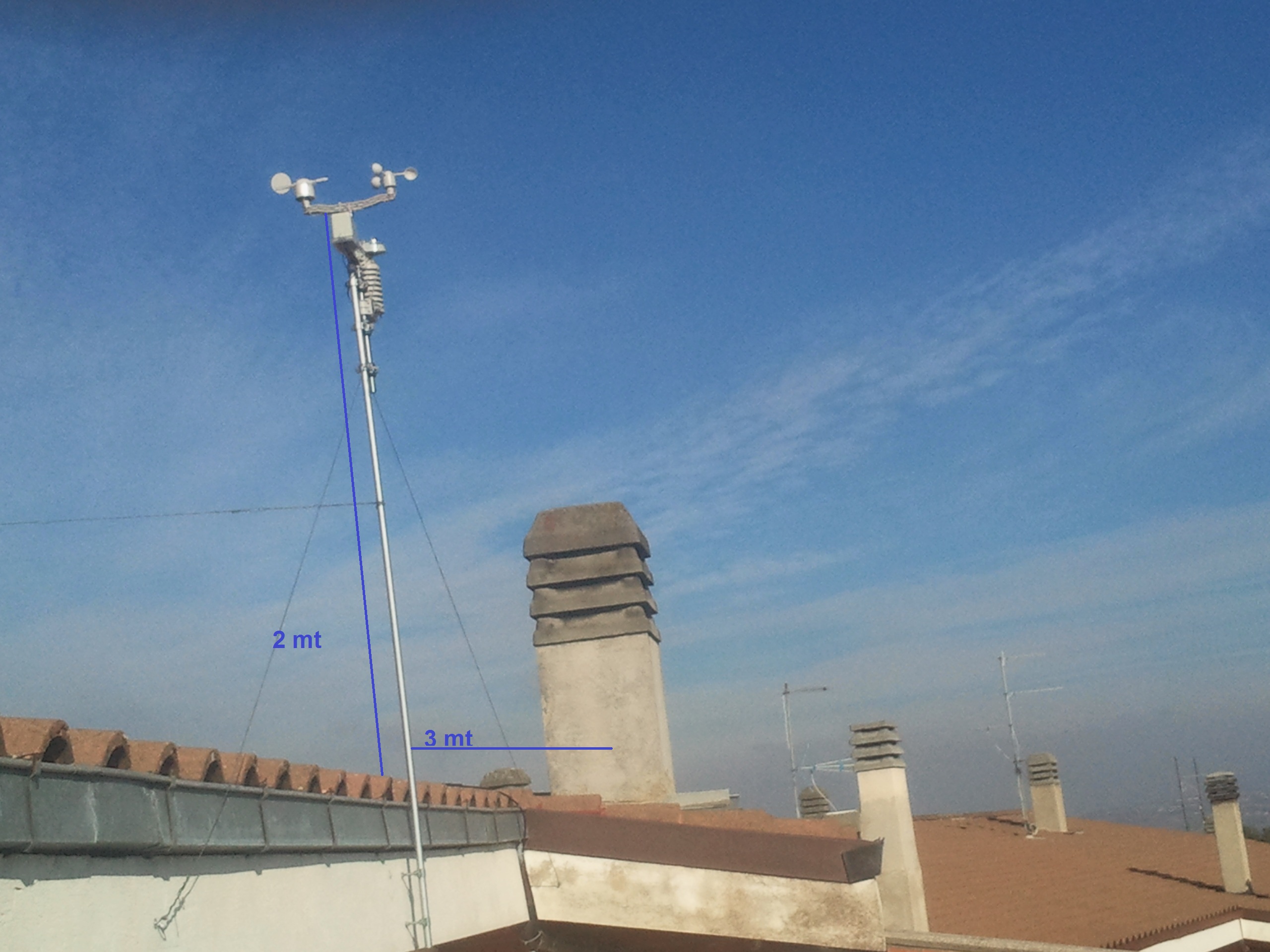 La stazione e collocato a 2 mt dal tetto, dal camino sui 3,50 mt e una zona di campagna.