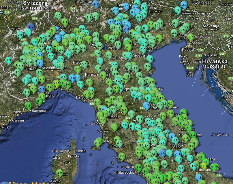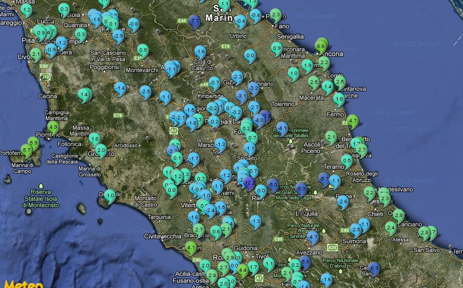 Vi allego uno Screenshot della rete delle temp minime di stamattina
