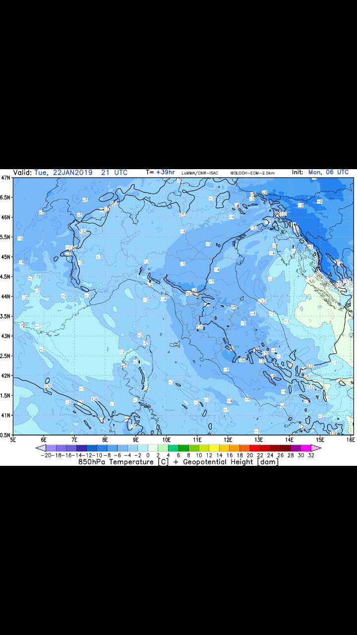 Nevicate: al di sopra di 300-500m su Toscana, Umbria, Marche, Lazio settentrionale ed orientale, in estensione ai settori orientali dell’Emilia-Romagna; dal pomeriggio in abbassamento fino a quote di pianura sulle zone interne di Toscana, Umbria, Marche e Romagna, con apporti al suolo da deboli a moderati. Al di sopra dei 600-800m sui restanti settori del Lazio e sull’Abruzzo, con apporti al suolo deboli.