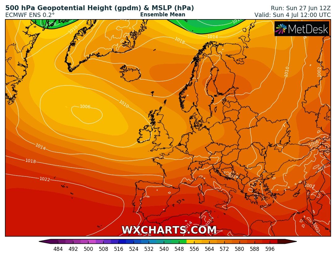 GPT che si faranno elevati dopo le 160 ore tra Canarie ed entroterra magrebino/ovest algerino (Spagna più "sotto tiro" dal 4-5 Luglio), in concomitanza con un west ITCZ che in seconda decade si è risollevata.