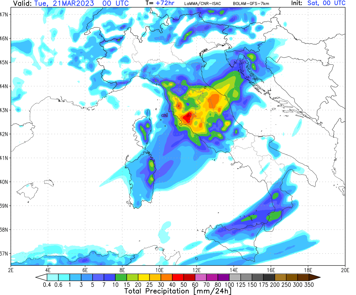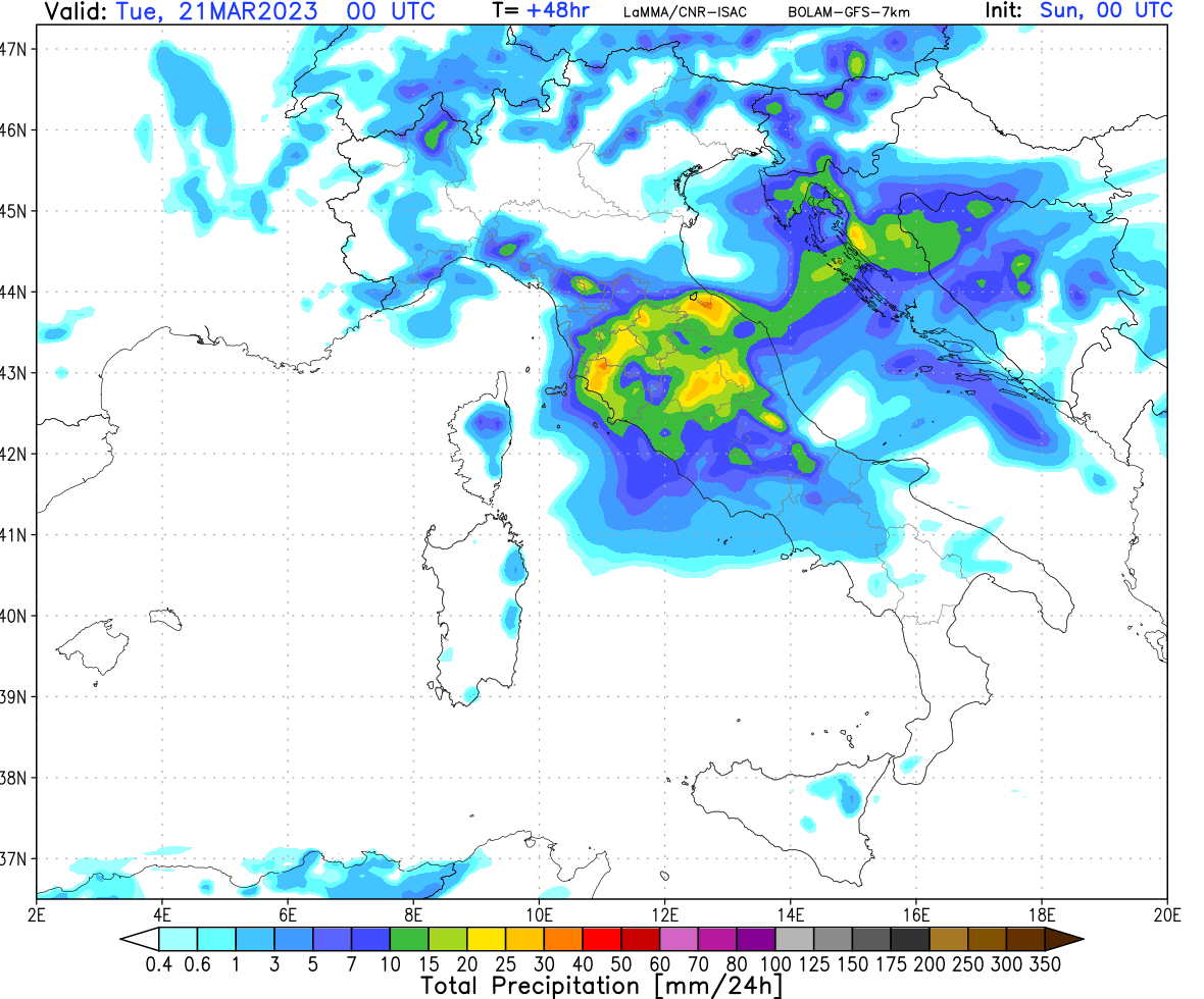 LAM confermano in generale un passaggio decente tra stanotte e domani, con accumuli generalmente buoni che potrebbero essere localmente ottimi grazie a nuclei temporaleschi, specialmente in Toscana.