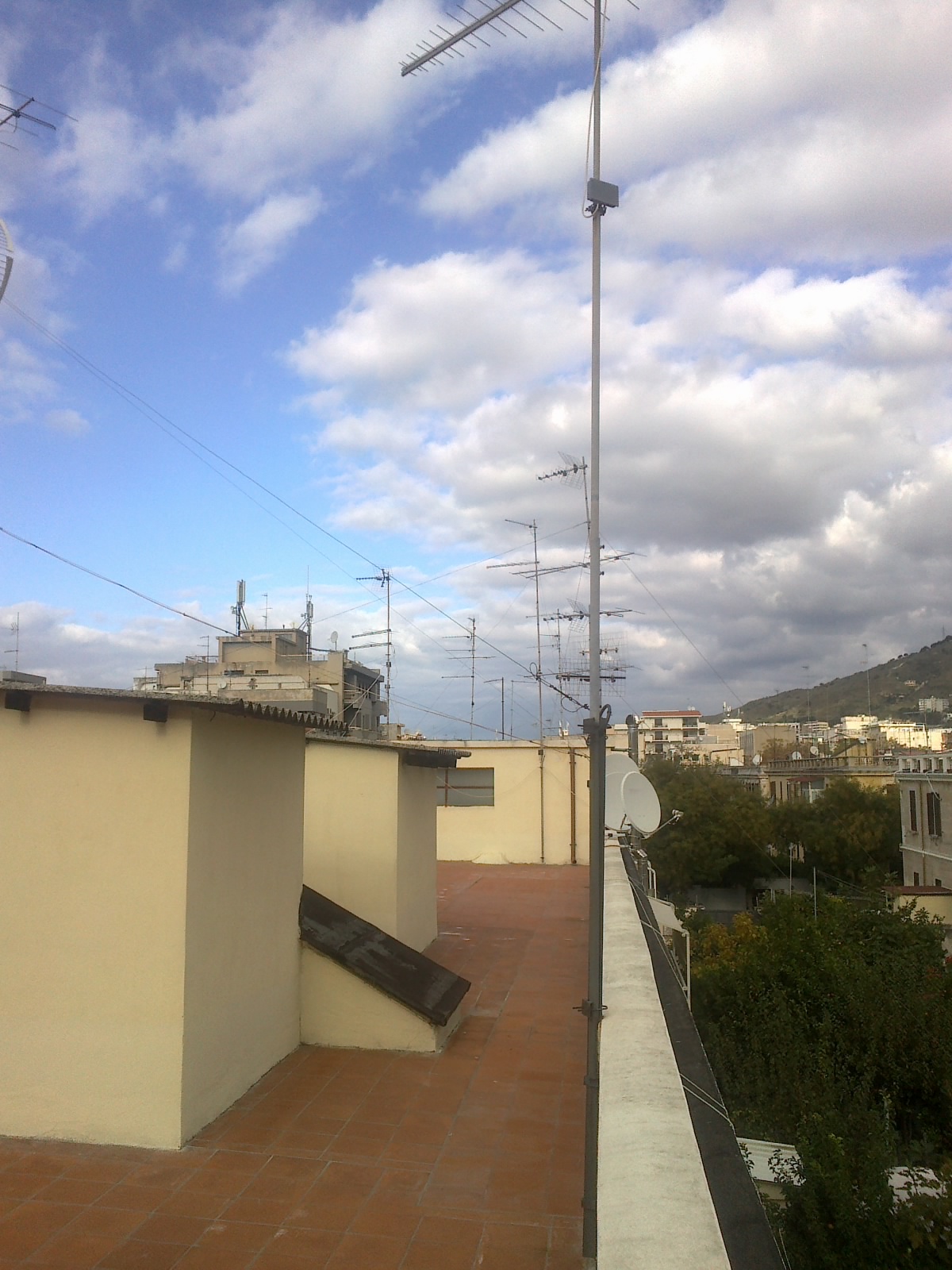 Dovrei installare sul mio terrazzo che si trova a circa 10 metri d'altezza dalla strada una stazione meteo davis vantage pro 2, è pronto un palo di 4 metri non telescopico che dovrei mettere al posto dell'antenna attaccata al muretto della terrazza, a circa 2 metri si trovano due stanzini e un abbaino alti 2,20 metri, il gruppo sensori ISS andrebbe bene a 3 metri dal pavimento del terrazzo magari con un braccio di ferro? e l'anemometro a 4 metri? Allego foto della terrazza.