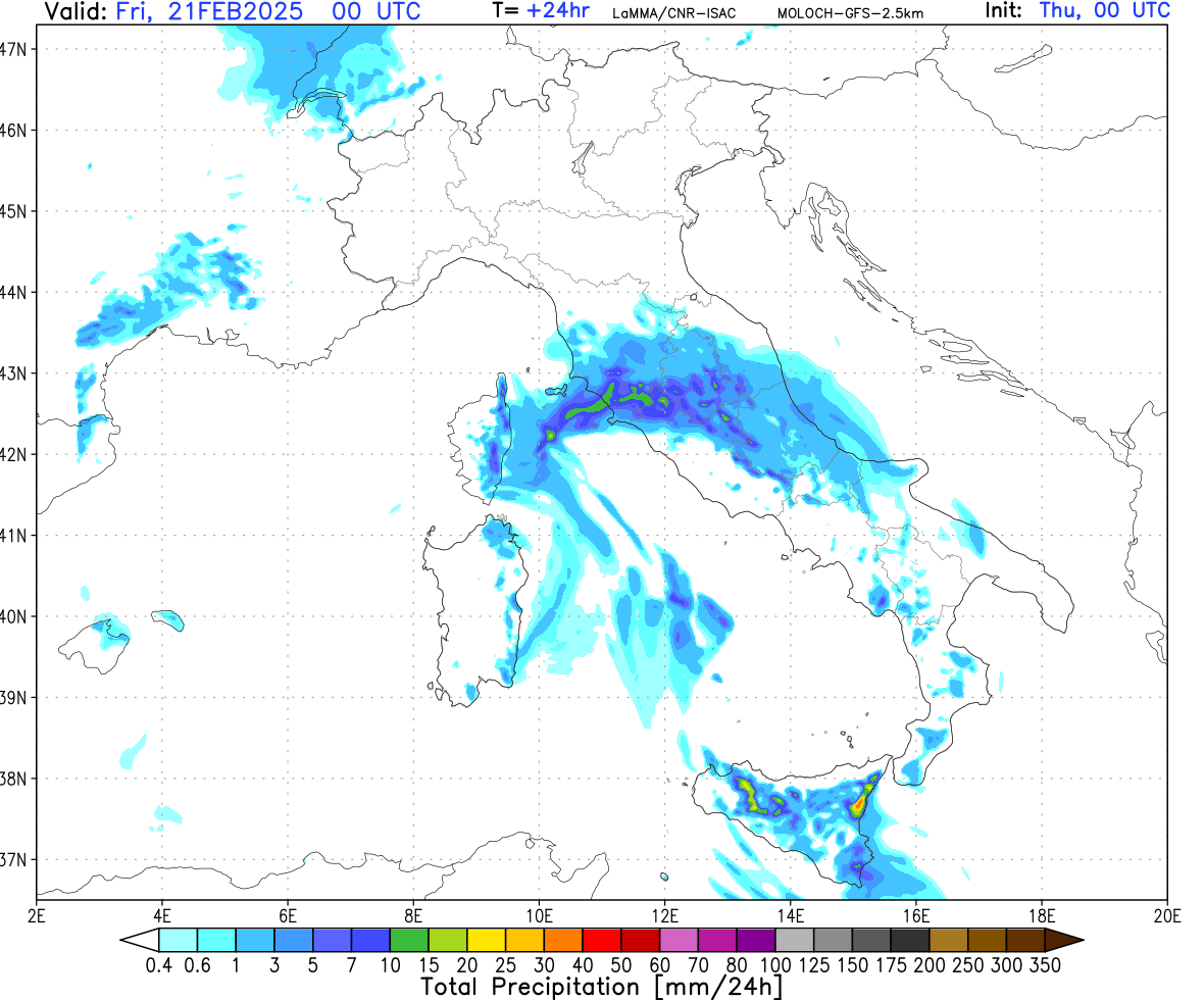 Comunque sembrerebbe tutto confinato all'Appennino, vediamo un'pò...