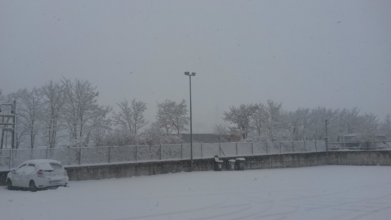 Ora nevica debolmente, a tratti, ma a tratti riprende fittamente, con temperatura lievemente negativa.