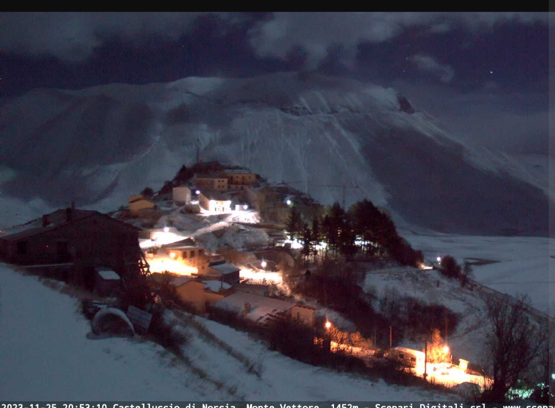 A Gualdo estremi di +1,3°/+10,3° con minima fatta alle 11:45 nel momento più intenso della nevicata (che ha lasciato 1,5 cm su prati e tetti) e massima a mezzanotte.