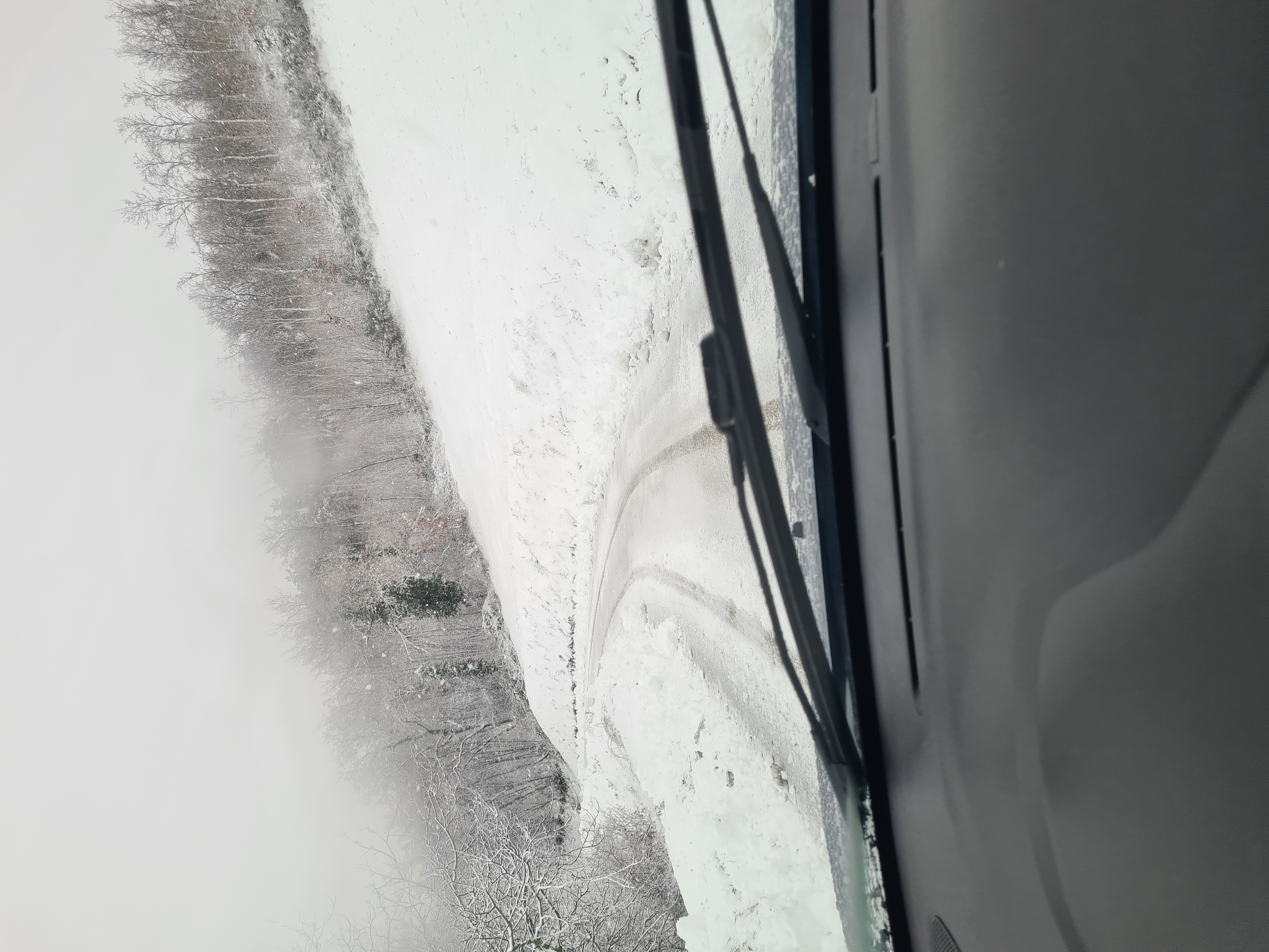 Al mattino ho fatto un giro di perlustrazione andando verso l'entroterra. Praticamente sono partito da casa nel bel mezzo di una bufera di acqua e vento. Il fondovalle era quasi un lago, c'erano ruscelli d'acqua che scorrevano da quasi tutte le pareti collinari. Salgo poi sui colli più interni della medio/alta Vallesina trovando le prime tracce di bianco a circa 300mt, dai 500mt il paesaggio cambia radicalmente, a salire c'erano almeno 10-15cm. Considerando le temperature al limite la neve caduta era una mezza poltiglia, scioglieva molto. Mi fermo chiaramente, laddove potevo arrivare con le termiche, le strade oltre ad una certa quota poi iniziavano a risultare impraticabili..
