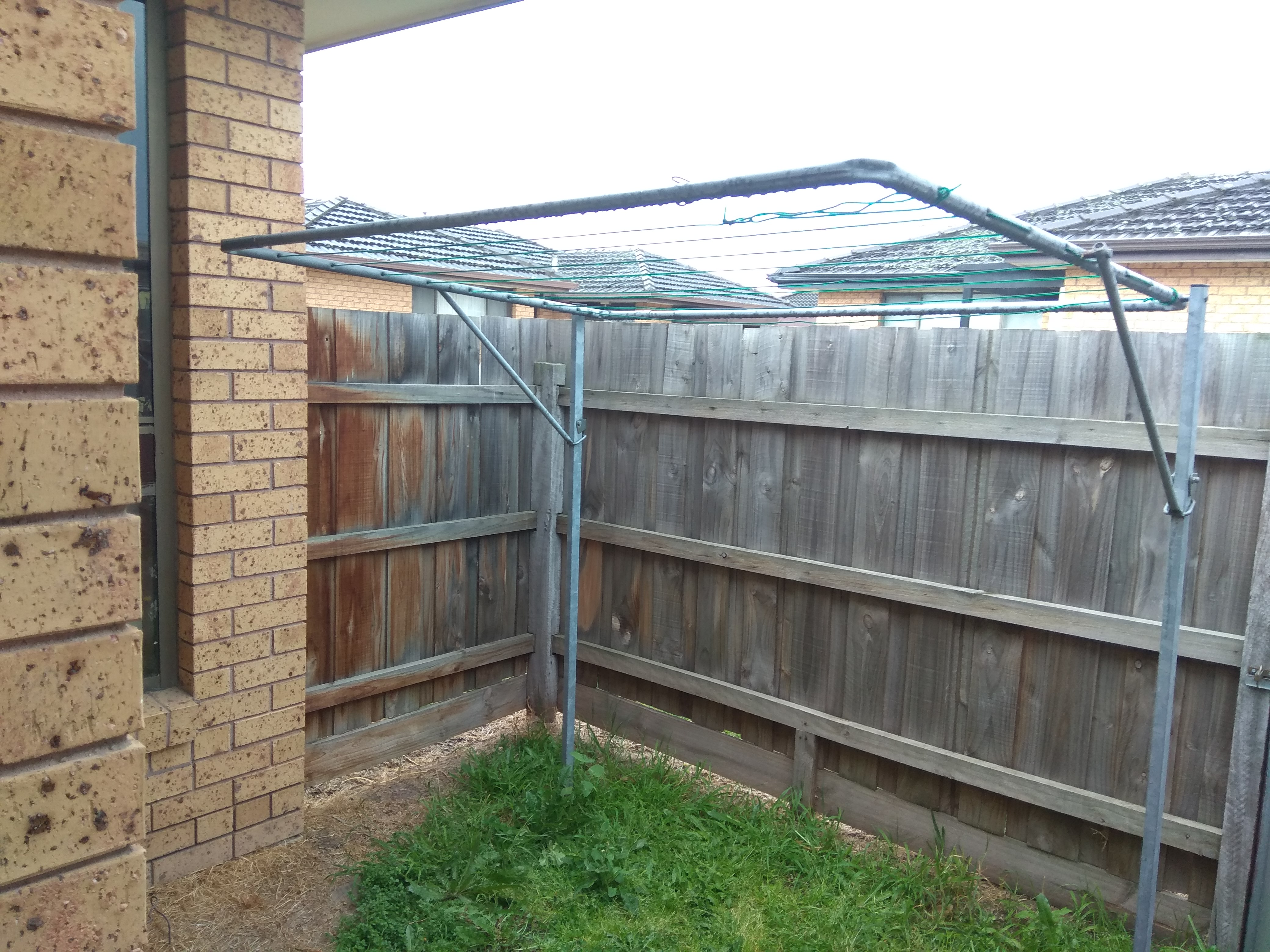 Credo che fissata sul palo dello stendino vicino alla porta metallica possa andar bene. D'altra parte non hai molte alternative, giusto?