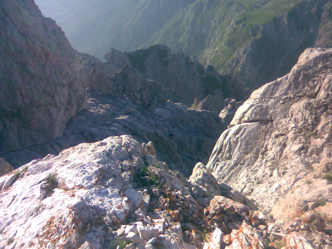 il Bafile è sotto la vetta orientale; da lì si scende un pò e poi si risale per un canale che è però un itinerario alpinistico, con passaggi di 2° e 3° grado, quindi un pò impegnativo, non fosse altro perchè sei sempre scoperto
