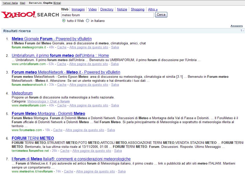 Insomma, c'è da ritenersi notevolmente soddisfatti. Una piccola chicca... siamo al secondo posto su Yahoo se viene ricercato un "forum meteo". Siamo anche davanti a Meteolive. C'è da chiedere di più?