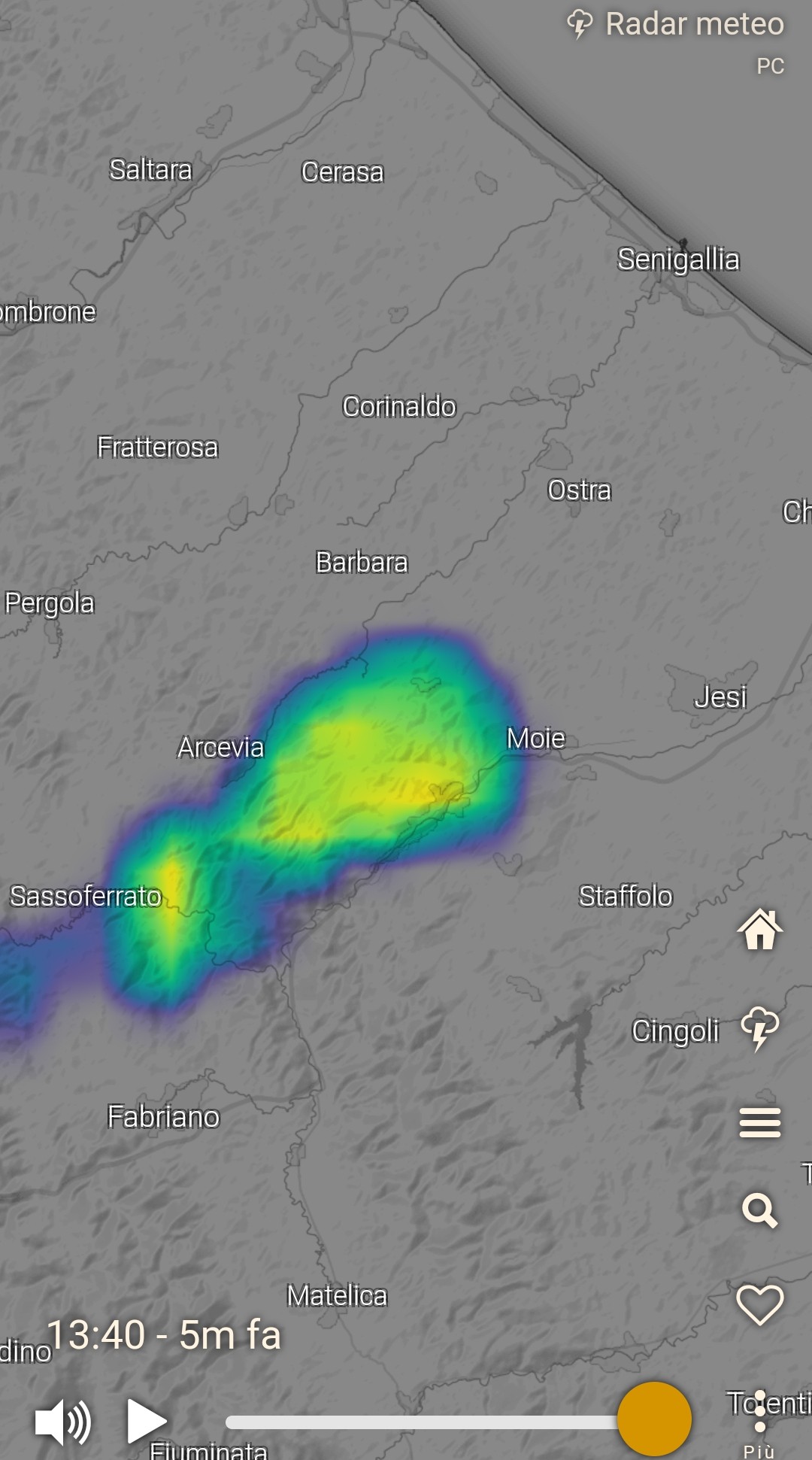 Come in oggetto: credo sia abbastanza affidabile: sono ormai 3 ore che vede precipitazioni localizzate sul parco della gola della rossa (anconetano interno) ed in effetti anche se a casa mia è sereno (jesi) vedo cileo molto scuro verso sud ovest (circa 30km)