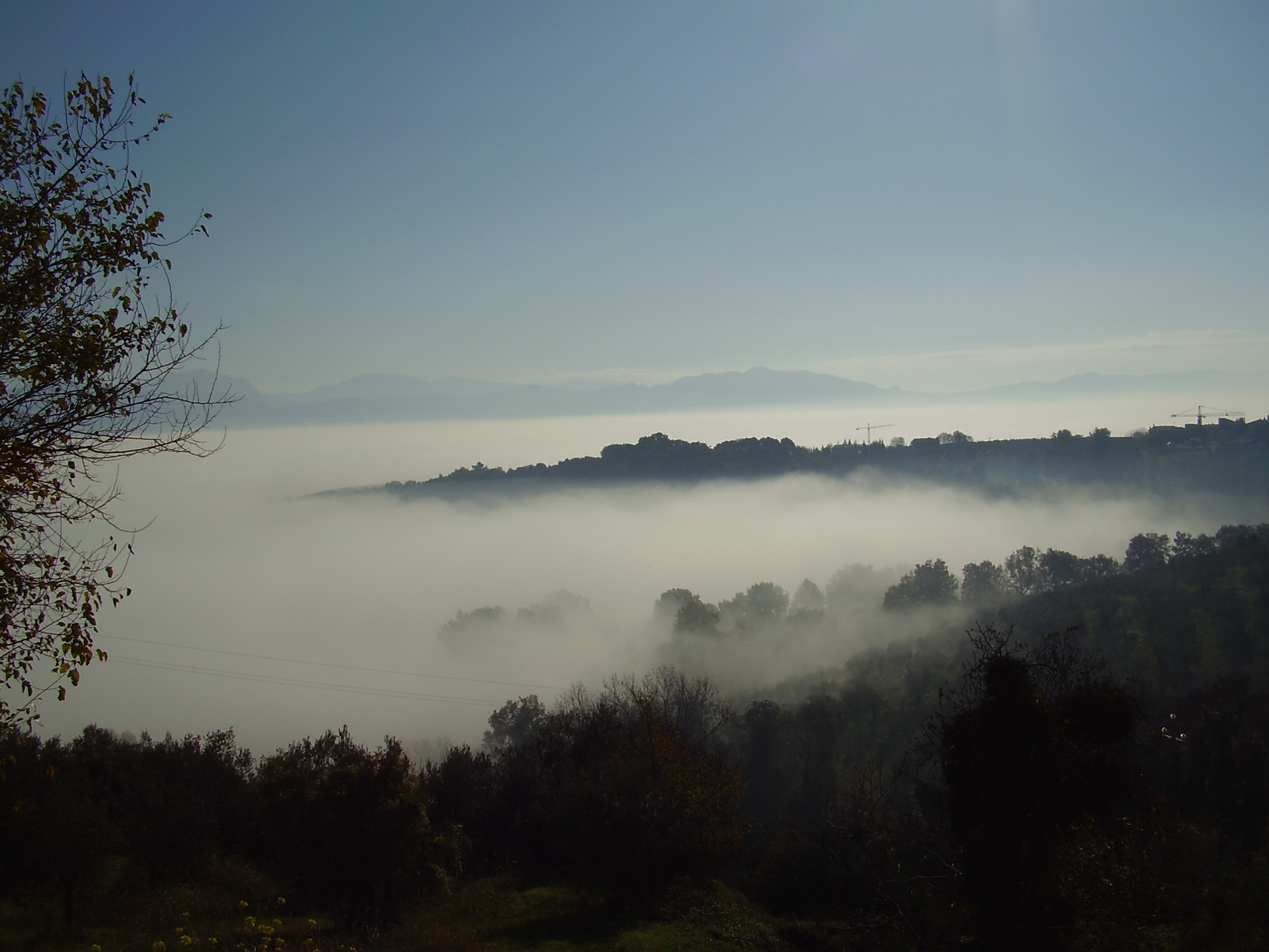 In questi giorni l'alta pressione ormai in fase di "invecchiamento", sta favorendo il ristagno di umidità, nebbie e foschie dense nelle zone basso collinari e vallive, lo strato di inversione oppone resistenza sotto i 500/600m di quota dove si nota il "tappeto" esteso di nubi basse e nebbie ... dalle alture il panorama è veramente indescrivibile !