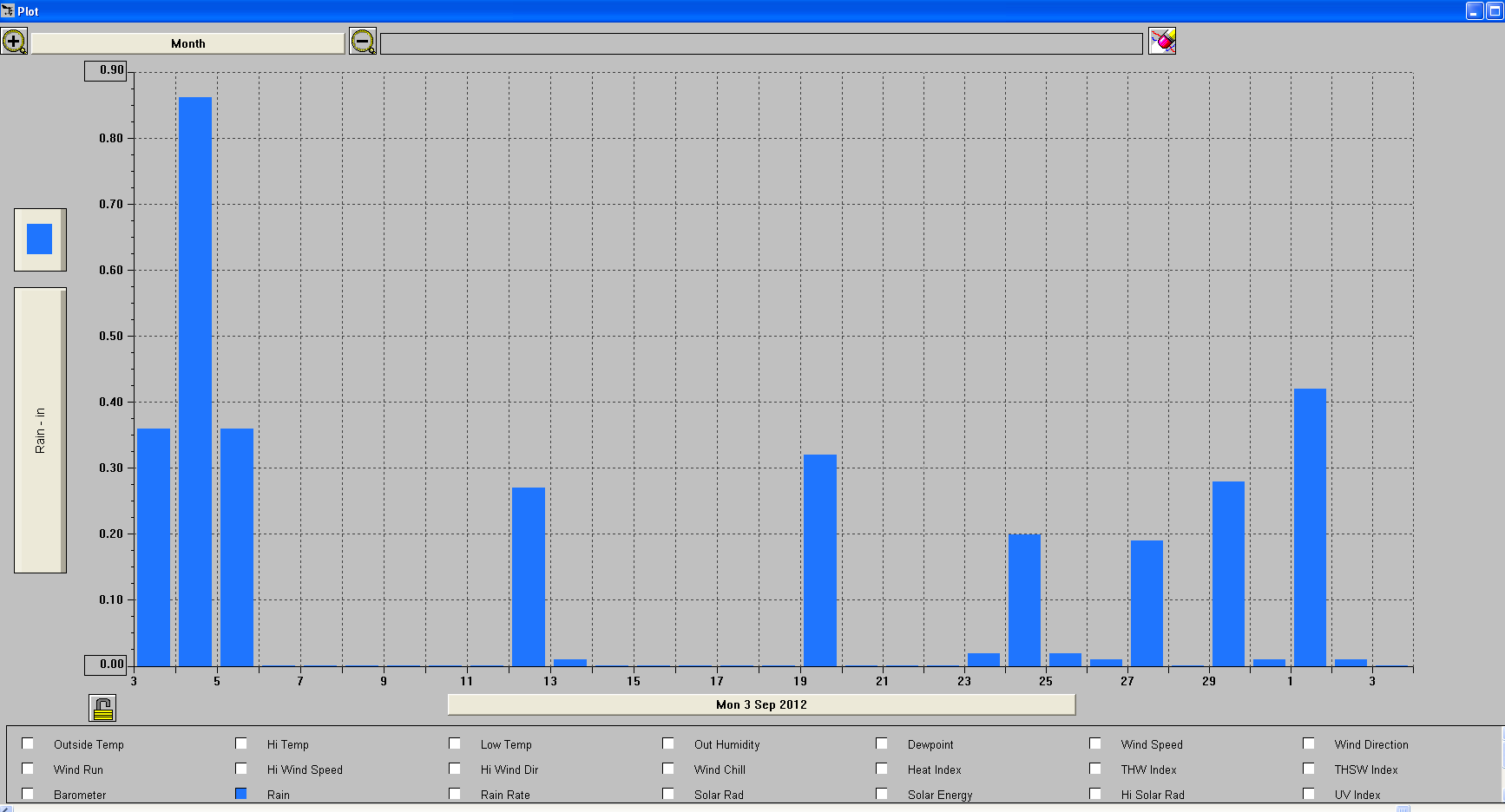 Ciao a tutti.Ho notato una anomalia nel programma WeatherLink della mia stazione.Nella finestra Yearly Rainfall o vero la nuvoletta con la pioggia, dove si vede archivio della pioggia mi mancano come archivio quallche mese.uno di anno scorso e sette di questo anno.Come archivio i mesi ci sono tutti ho controllato bene.Chiedo a voi cosa potrebbe essere?quallche settaggio o altro?alego una foto allo schiermo del pc.grazie mille.